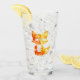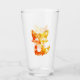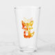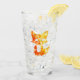 um design decorativo de uma pequena raposa fofa com cores laranja e amarelas na sua silhueta parecendo chamas em um vidro bebendo.