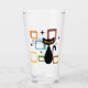 Ilustração colorida do estilo do Meio século abstrato com gato preto, estrelas pretas e ornamentação colorida em fundo branco. Você pode adicionar seu nome/monograma para personalizar o item.