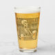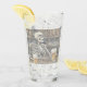 A drinking glass with humor and a vintage look, there is a skeleton having just one more beer before heading home.