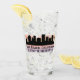 Copo pint é caracterizado pela silhueta da cidade de Long Beach, Califórnia com respingos de aquarela e coordenadas de latitude e longitude do mapa