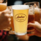 Vidro de cerveja para o padrinho de casamento de casamento que mostra seu nome impresso em marrom escuro, roteiro estilizado dentro a marrom cor borda oval junto com data do ano de casamento. Uma ideia de excelente para uma despedida de solteiro! Personalize seu copo de cerveja editando e substituindo nome e data pelo seu. Disponível em muitos esquemas populares de cor de casamento.