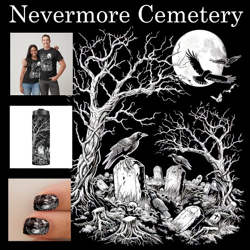 Aproveite uma bebida assustadoramente boa com este design gótico inspirado por Edgar Allen, com ravens a arremessar sobre a cabeça num cemitério abandonado sob a lua de cheio Samhain.