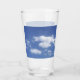Nuvens brancas fofas estão espalhadas por um céu azul brilhante. A imagem transmite uma sensação de paz e abertura.