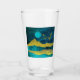 design de paisagem da montanha abstrato em tons de ouro, ciano e azul em tons negros, com um nascer, estrelas e pássaros.