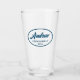 Vidro de cerveja para o padrinho de casamento de casamento que mostra seu nome impresso em uma trendy, cor azul-lacrimogênea, escrita estilizada dentro a teal azul cor azul borda oval junto com a data do ano de casamento. Uma ideia de excelente para uma despedida de solteiro! Personalize seu copo de cerveja editando e substituindo nome e data pelo seu. Disponível em muitos esquemas populares de cor de casamento.