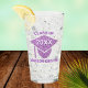 Crie seu próprio copo de graduação com um design púrpura e o boné de formatura clássico e motif de tassel em brilho púrpura falso por uma espécie de guarnição. Três modelos de texto facilitam a personalização desses óculos de graduação altos - mude o texto roxo arquivado no topo da CLASSE DE para PARABÉNS, conforme desejar. O texto roxo inferior é perfeito para adicionar o nome do seu formando e, em seguida, editar o ano de graduação no meio da placa de massa e do design de fita ou limpá-lo se você preferir um design ainda mais simples. Crie um conjunto de óculos de graduação personalizados para um grupo de amigos, um conjunto de cheios para a família para o janto de formatura final ou talvez apenas um como guardião para sua sobrinha ou sobrinho favorito. O moderno, mas elegante design roxo, falso, fará destes óculos de graduação personalizados um dom único e ponderado.