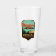 Um design viagens vintage de crachá do Parque Nacional do Lago Cratera, um lago de cratera com Ilha Wizard e Nave Fantasma no Condado de Klamath, Oregon Estados Unidos.