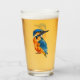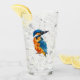 um trabalho de arte de aquarela decorativa de uma ave-do-rei em aquarela azul e laranja num copo bebendo.