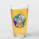 Pentagrama luminoso desenhado artificialmente com cinco elementos mágicos, água, terra, fogo, astral, ar sobre fundo negro. Pentagrama Wiccan. Wicca