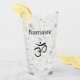 Vidro simples com um design de símbolo om preto. Com as letras negras, você pode personalizar com sua própria mensagem. Excelente por adicionar um toque de espiritualidade ao seu entretenimento.