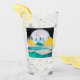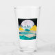 A beautiful landscape with unique textures showing a huge supermoon rising in a mountain landscape with rolling hills and trees in shades of blue, cyan, gold, and yellow.