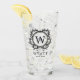 Vidro de cerveja monograma para o seu melhor homem com a sua dentro inicial, uma armação redonda decorada com folhas acima do nome e papel de festa de casamento.