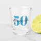Copo personalizado de aniversário de 50 anos com texto de idade em azul e nome em letra moderna. As cores e fontes podem ser alteradas se necessário