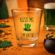 Um copo shot legal perfeito para o Dia de São Patrício, este design apresenta "Beije-me, sou irlandês" escrito em uma fonte verde divertida com um chapéu alto verde e amarelo no meio. Faça seu pedido hoje! Design do Chapéu: AMBillustrations http://www.etsy.com/shop/AMBillustrations/