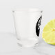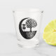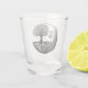 Disc golf themed shot glass. Black and white disc golf basket and tree roots silhouette.