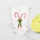 1.5 oz. vidro fotografado com a imagem de duas canetas doces brancas e vermelhas cruzadas, amarradas com um bonito arco verde e dourado, realçado com um sino vermelho e verde. Veja a coleção inteira de Vidro de Natal na categoria HOME na seção HOLIDAYS.