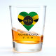 Jamaica atirou vidro com coração de bandeira jamaicana e iniciais de monograma. Excelente para um casamento de destino.