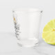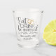 O Shot glass apresenta as palavras "Coma, Beba, Seja Casado" em uma elegante fonte preta com script. Os detalhes de design incluem anéis de casamento dourados, estereótipos semelhantes e uma decoração floral vintage com corações. Personalize com os nomes dos casais do casamento e a data do casamento. Faz um favor de casamento ou um presente de noiva, assim como um presente comemorativo para um casal especial.