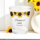 Copo de shot para damas de honra com girassóis em aquarela amarelos, texto de casamento e data. Mais produtos com este design estão na coleção abaixo.