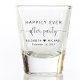 Vidro de uma recepção de casamento elegante com "Feliz eterno partido" em uma mistura de simples tipografia e um roteiro de na moda com pestanas, seus primeiros nomes unidos por um coração e sua data de recepção.