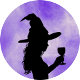 Óculos de bruxa personalizados para a sua festa de solteira de Halloween. Eles apresentam a silhueta de uma bruxa sobre um fundo enfumaçado.