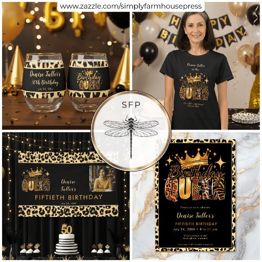 Modern, chic and fun, this birthday shot glass celebrates the wild queen in every woman! With a blend of leopard, tiger, and other wild prints, this black, orange and gold themed design is a fun way to celebrate a milestone birthday. Created by Simply Farmhouse Press.