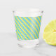 Symmetrical grid of crumpled paper textures in alternating greenish-yellow and light blue, creating a vibrant, tactile striped pattern with depth and visual rhythm