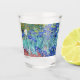 Irlandeses (1889) Vincent van Gogh. Uma bela paisagem de verão. Os irlandeses azuis florescem num leito florido num jardim verde. Reprodução de famosas imagens de arte no dominio público.