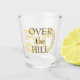 Over the hill shot glass. Include his, or her, age behind the "over the hill" wording. Text is dark brown-black with orange shadow. The numbers are light gray outlined in orange-yellow.