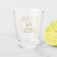 Copo de shot Além da Montanha. Inclua a idade dele ou dela atrás da frase "além da montanha". O texto é marrom-escuro/preto com sombra laranja. Os números são cinza-claro delineados em laranja-amarelo.
