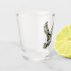 This monogrammed shot glass features a flying mallard duck in camouflage print of brown and dark green. Personalize the monogram with your choice of initials. Great for monogrammed gift bags and party favors.