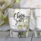 Dê aos seus convidados de casamento, festas noivas e padrinhos de casamento uma lembrança de guardiã do seu dia especial. Este moderno favor de vitrine de casamento mostra "Saúde!" em um roteiro de na moda. Adicione seus primeiros nomes e a data do casamento.