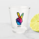 1,5 onças. vidro de tiro com uma imagem de uma mão arco-íris-colorida que faz um sinal de paz. Texto opcional. Veja a coleção inteira do vidro de tiro do disco 70s na seção dos pratos de FOOD/BEV |.