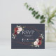 Moderna e moderna, este convite de casamento RSVP design apresenta uma falso geometria de cobre embelezada com verde-aquarela eucalipto e arranjos florais cor-de-rosa e burgundy, sobre uma textura azul-marinho moderna, com "RSVP" em uma cor rosa pálida. Esta é a opção de não comer. Parte de um jogo de casamento. Convidados Elegantes de Direitos Autorais. Todos os direitos reservados.