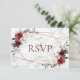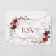 Moderno e moderno, este convite de casamento RSVP design apresenta uma geometria falsa de cobre embelezada com verde de eucalipto aquoso e arranjos florais burgundy e rosa, sobre uma textura falsa de mármore branco, com "RSVP" em uma cor burgundy correspondente. As opções de refeições são incluídas, que são facilmente personalizadas, também do tipo burgundy. Para remover as escolhas de refeições, criamos um vídeo de como fazer para você aqui: https://youtu.be/ZGpeldQgxoE Parte de um jogo de casamento correspondente. Copyright Anastasia Surridge Designs: Convidados Elegantes. Todos os direitos reservados.