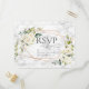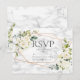 Moderno e moderno, este convite de casamento RSVP design apresenta um falso geométrico de cobre embelezado com cor d'água floral branca e eucalipto verde floral, sobre uma textura falsa de mármore branco. Esta é a opção de não comer. Parte de um jogo de casamento. Convidados Elegantes de Direitos Autorais. Todos os direitos reservados.