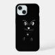 Coque Iphone avec une tête de chat et son reflet blanc sur fond noir . Design sobre et stylisé.