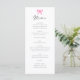 Menu de Casamento para recepção com coquete de arco rosa-d'água.
