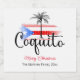 Um rótulo de Coquito Merry Christmas Bottle com uma bandeira de Porto Rico e design de palmeira de Porto Rico. É uma etiqueta festiva que você pode usar para suas decorações de festas de férias ou para presentes de festas.