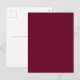 Cartão-postal clássico e moderno de cor sólida "Dark Burgundy" / Vinho Vermelho Escuro das nossas "Cores de Natal Rosa". Design simples e limpo com cores sólidas para um recurso de eterno. Explore nossas Cores de Natal Rosa para outros produtos com a mesma cor, ou misture e combine com outras cores de tendência de na moda para corresponder ao seu estilo exclusivo.