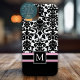 Um design elegante e tenente para o seu telefone. Um presente de excelente para qualquer mulher artística. Preto e branco com sotaques cor-de-rosa.