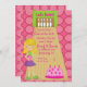 Comece sua celebração fora com este partido adorável da boliche convidar. É para um partido de rolamento das meninas. caracteriza uma menina de cabelo loura na borda de uma pista da boliche com um ninho cor-de-rosa do bolo de aniversário a ela. A escrita está indo abaixo do beco. É ajustada em um fundo cor-de-rosa claro e escuro do ponto. Procure os muitos outros produtos nesta linha. ilustrações de Weible do ©Jessica