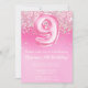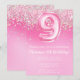 Pink 9th Birthday Invitation Girly Pink Glitter convite de aniversário para uma garota de 9 anos com escrevendo de roteiro moderno e balões de folha de papel divertida.