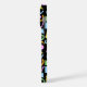 Padrão do estilo dos anos 80 em formas coloridas de verde, amarelo, azul e amarelo em um fundo preto.