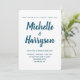 Convide amigos e familiares para comparecerem seu dia especial com nossos convites para casamento simples e modernos. Os convites de casamento minimalistas combinam caligrafia elegante com um esquema de cor azul e branco. Personalize os convites de casamento com seus detalhes de casamento. A placa se retorna a uma cor sólida com linhas verticais desenhadas à mão branca. RSVP/placa/acessórios correspondentes disponíveis na loja. Qualquer cor disponível, entre em contato conosco para solicitar personalização