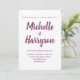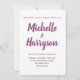 Convide amigos e familiares para comparecerem seu dia especial com nossos convites para casamento simples e modernos. Os convites de casamento minimalistas combinam caligrafia elegante com um esquema de cor púrpura e branca. Personalize os convites de casamento com seus detalhes de casamento. A placa se retorna a uma cor sólida com linhas verticais desenhadas à mão branca. RSVP/placa/acessórios correspondentes disponíveis na loja. Qualquer cor disponível, entre em contato conosco para solicitar personalização