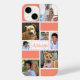 Crie a sua própria capa de telefone personalizada de célula fotográfica personalizada e a cores, com um design de bloco de cores na sua escolha de cores, 7 imagens e o seu nome, monograma ou outro texto na sua escolha de estilos de fonte e cor (mostrado na tipografia moderna com letra de texto). A amostra é mostrada em uma popular cor de coral em branco que você pode mudar para qualquer combinação de cores para ajustado seu estilo. OPÇÕES DE TELEFONE: O exemplo é mostrado no modelo iPhone 14 e no estilo Mal-Ali - outros modelos de telefone e estilo de caixa são mostrados na página de pedido. ASSISTÊNCIA: para obter ajuda com a modificação ou personalização do design, alteração de cor ou redimensionamento para outro estilo de telefone, entre em contato com o designer antes de fazer o pedido via Chat Zazzle ou email makeitaboutyoustore@gmail.com.