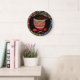 Relógio colorido da cozinha mexicana comida com uma taça decorativa de comida, garfo e colher, no estilo Aztec, com design áspero e texto personalizado. Desculpe, meu espanhol é terrível, mas eu sei boa comida quando eu o como!