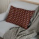 Bolsas de microfibra macia que apresentam a foto de uma flor vermelha Collarette Dahlia com pétalas brancas e internas sobre fundo preto e impressas em um padrão repetitivo. Um design floral adorável! Solicite um travesseiro de solteiro ou um par.