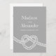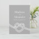 Simples esboço gráfico moderno em forma de coração convite para casamento de casando em cinzas eternos e branco. O casando é um símbolo clássico para mostrar a união de dois numa unidade interligada e duradoura. Imagem e design simples de desenho de nó por Sarah Trett.